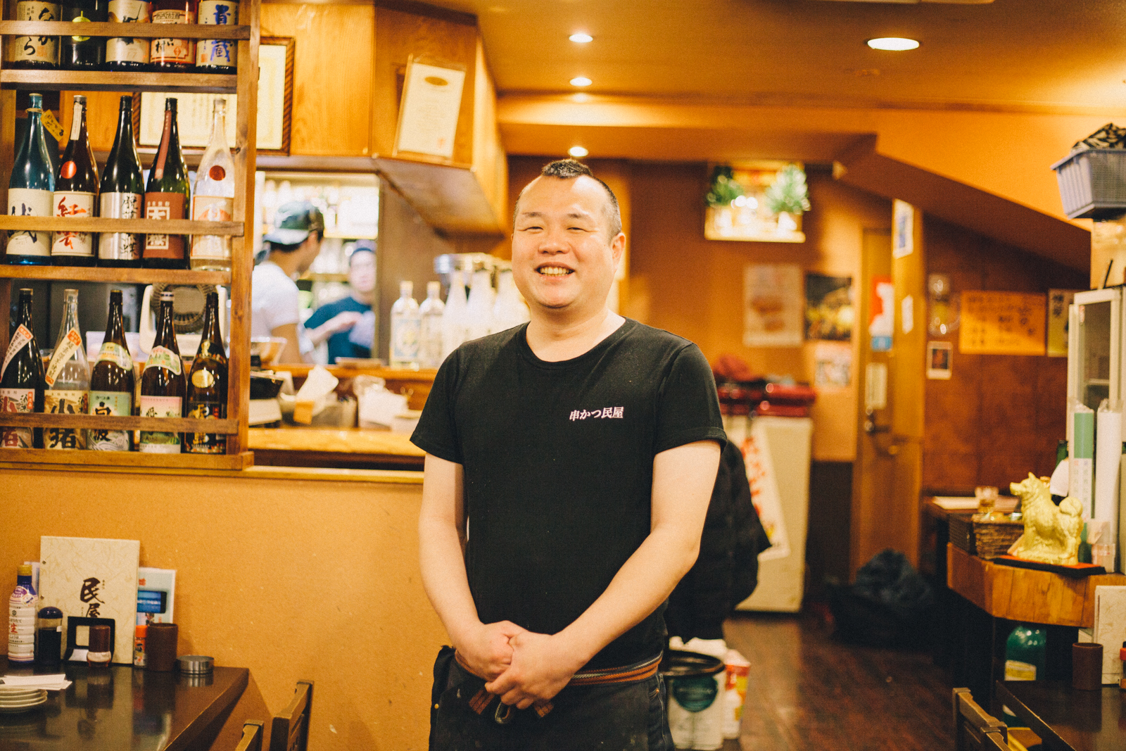 もともと代田橋で1.5坪という小さなお店をスタートした民谷さん。何をやるかは決めずに物件を先に決めて、「この狭さでできることは…」と考え、串カツを選択。その後10数年にわたり多数の店舗を立ち上げ、大半を売却したり、独立をバックアップする形で、現在は代田橋と上原で2店舗を経営しています。