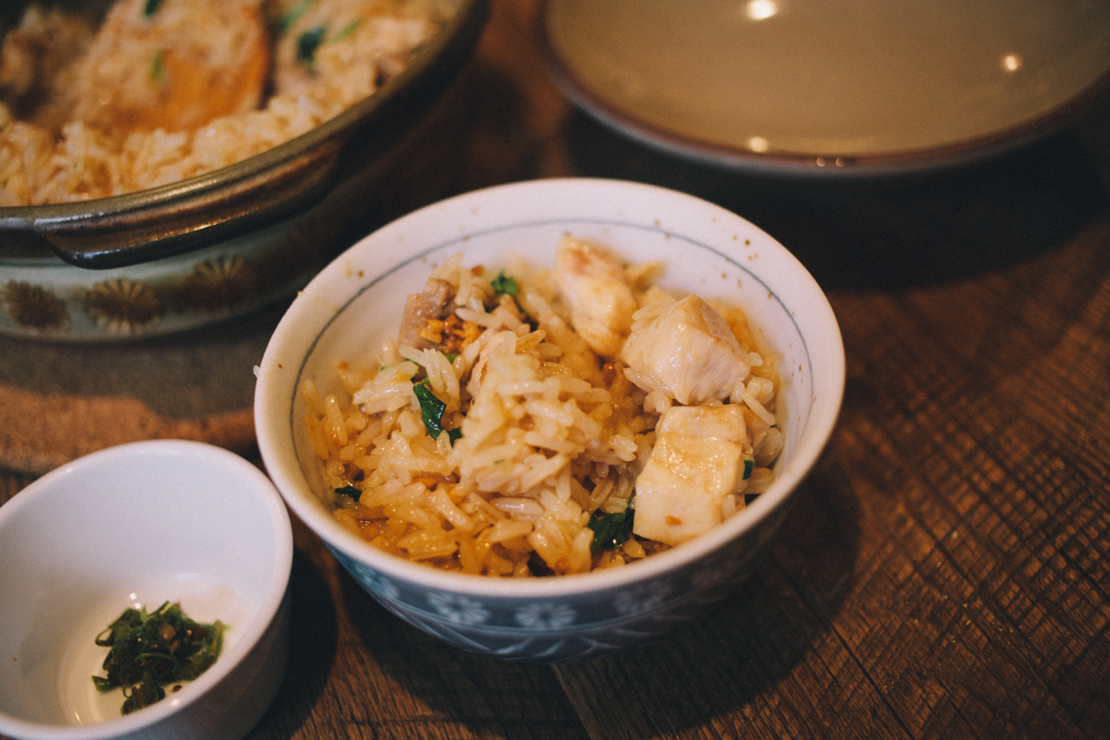 名物の蒸し鶏土鍋ご飯 ¥1,400