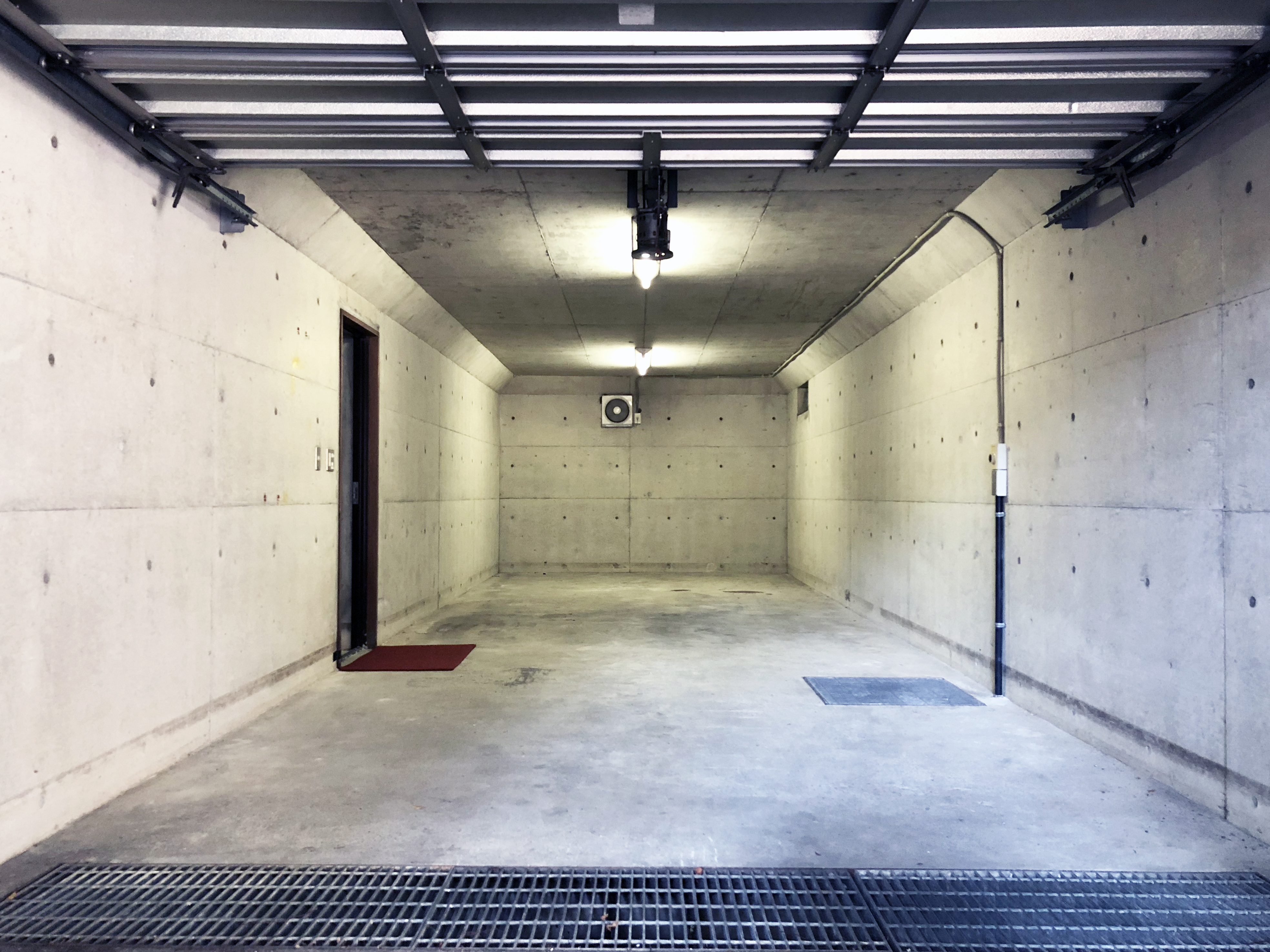 たとえば2Fを人が出入りする展示会やイベントのメイン会場にして、1F部分はまるまるスタッフスペースにするなどの使い方が可能です。玄関からではなく、ガレージが入り口というのは非日常空間へ行くような気分になります。
