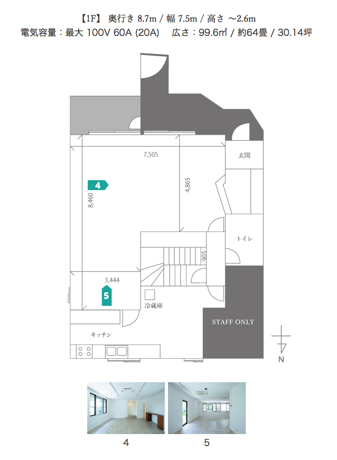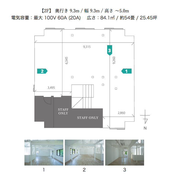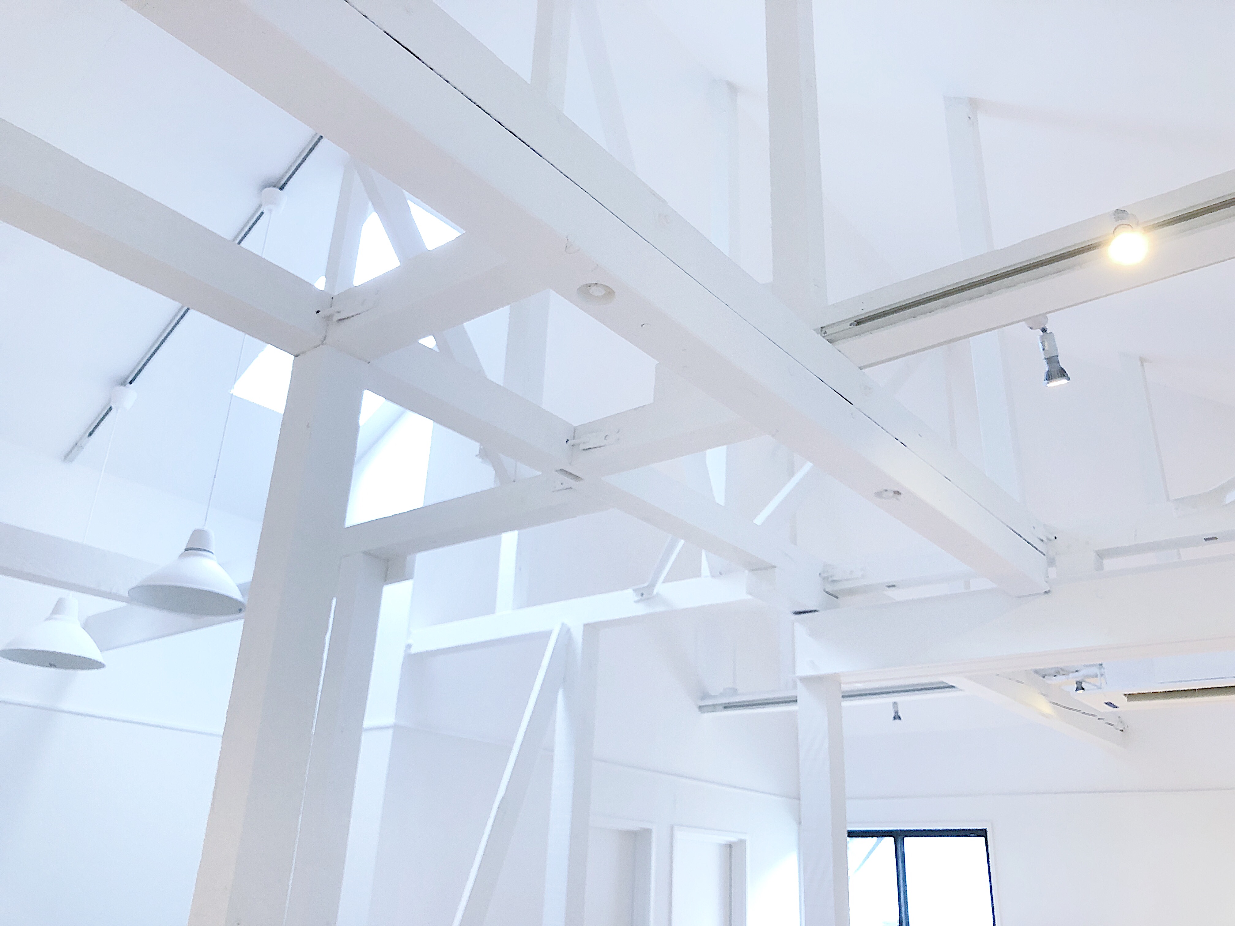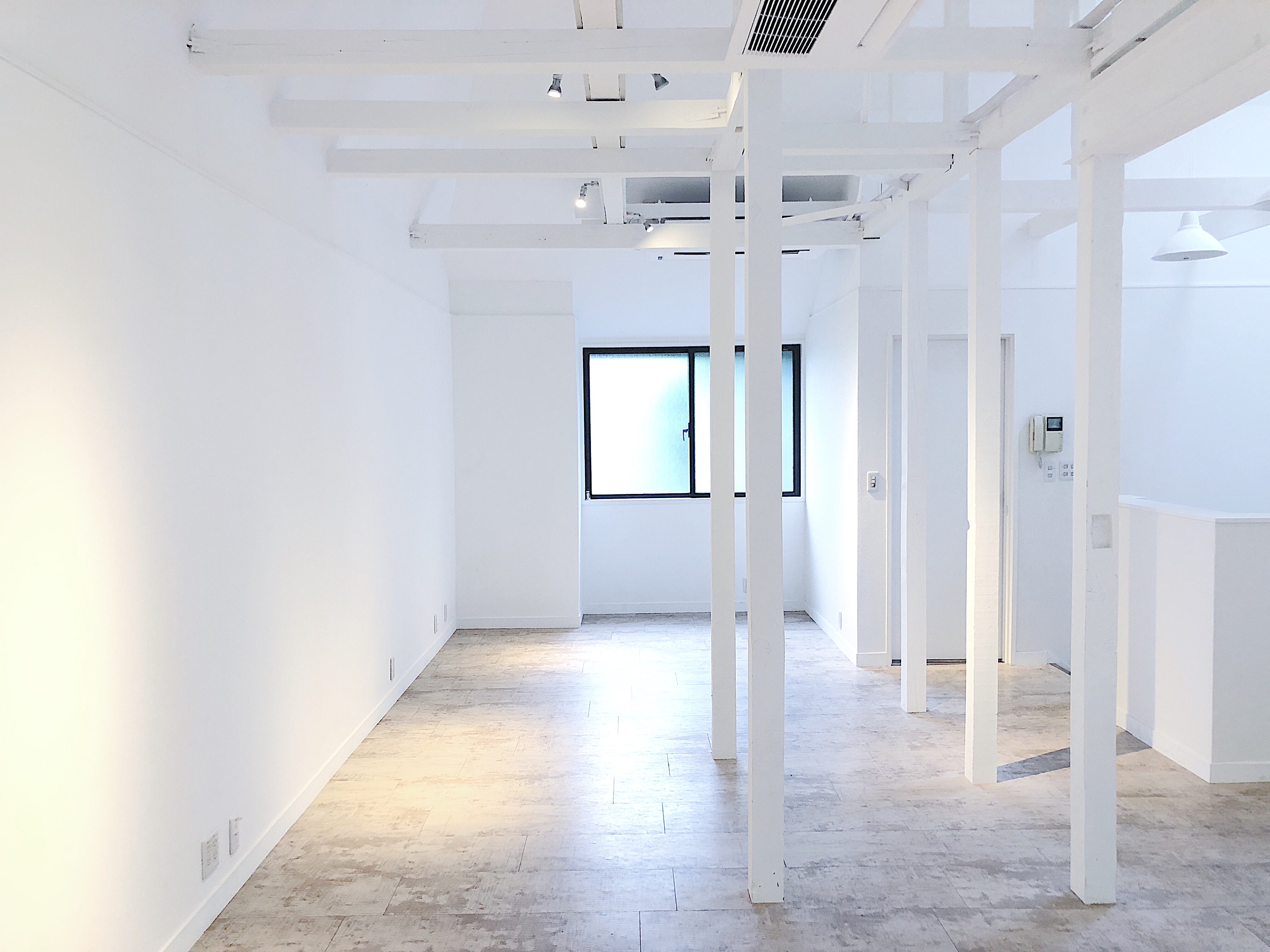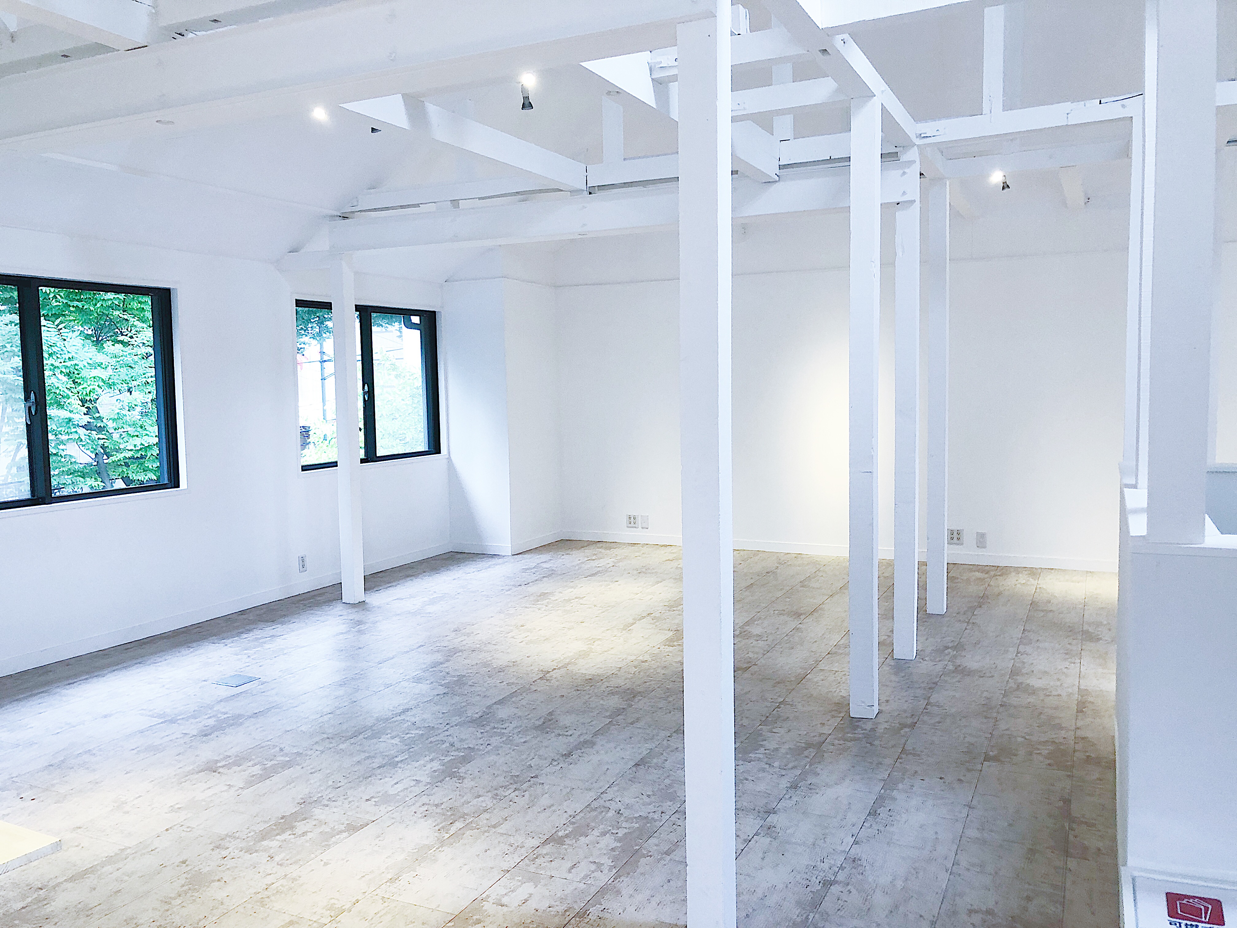 両面に窓がついており、明るく開放的な空間です。壁面や天井は白で統一されていてフラットなつくりなので、一般的な用途や撮影であれば1F部分だけでも十分そうです。