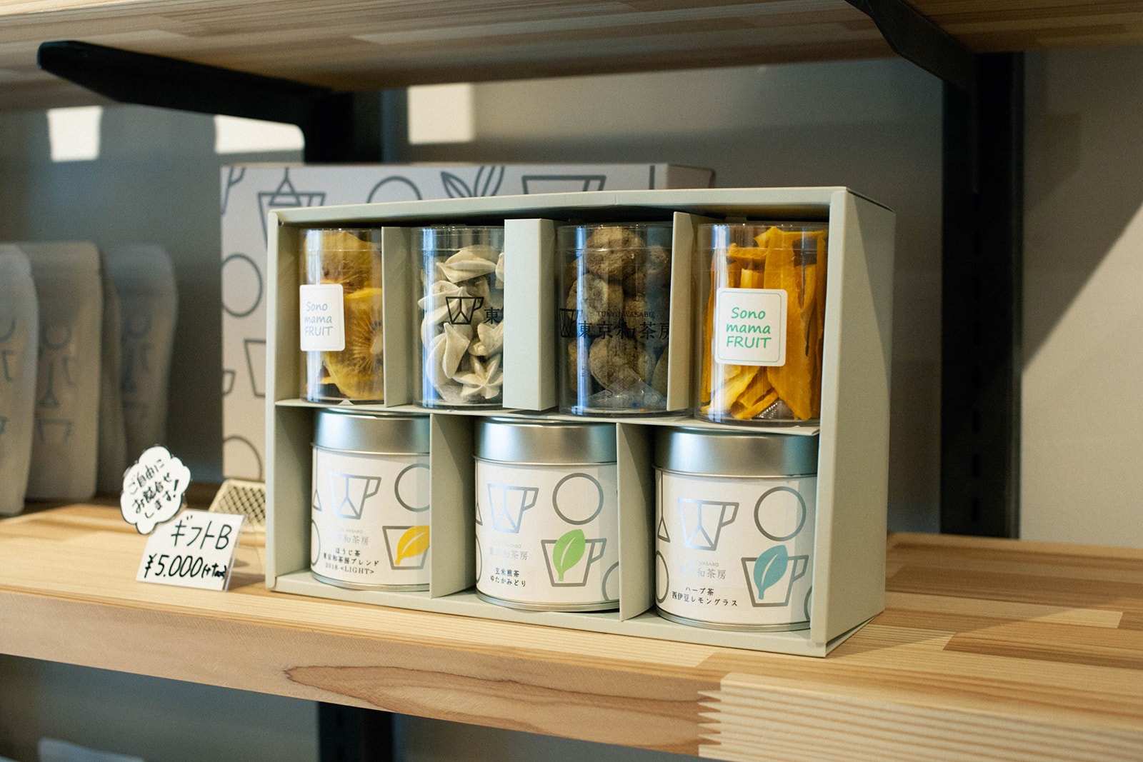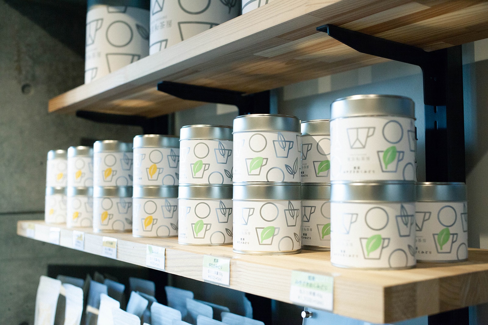店に並ぶ商品は、煎茶・ほうじ茶・和紅茶・和烏龍茶、レモングラスなど約10種類で、京都府、宮崎県、静岡県などの生産者から仕入れています。茶葉ごとに茶葉のみのパック、ティーバッグ、缶入りがあり、普段遣いにもギフトにもおすすめです。