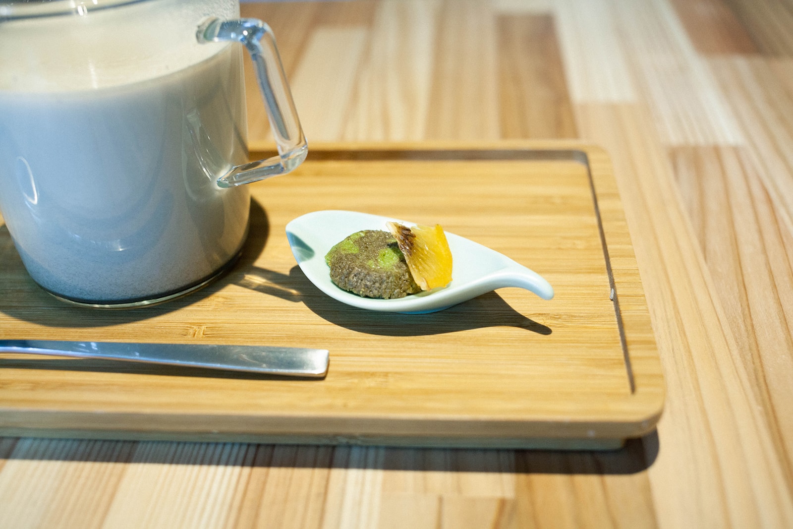 単品でのオーダーでも、クッキーやドライフルーツなどのお茶菓子が付いてきます。ほうじ茶ラテと一緒にいただくことでそのマリアージュを楽しむことができるため、お茶の味わい方の幅がさらに広がる。お菓子ももちろん店頭でお求めいただけます。