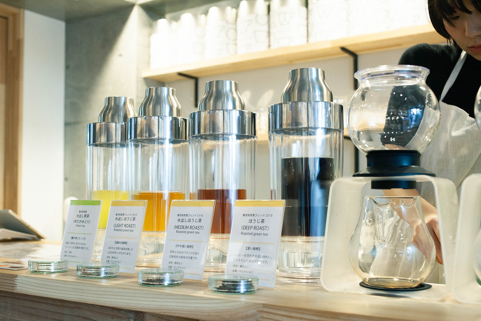 フードプランナーの清川惠美子さんが「もっと気軽に、日常的にお茶を飲んでほしい」と立ち上げたブランド兼ショップ、東京和茶房。売場で焙煎したお茶を販売もしており、併設のカフェスペースでは、焙煎したてのほうじ茶を使用したドリンクやスイーツのメニューを提供しています。