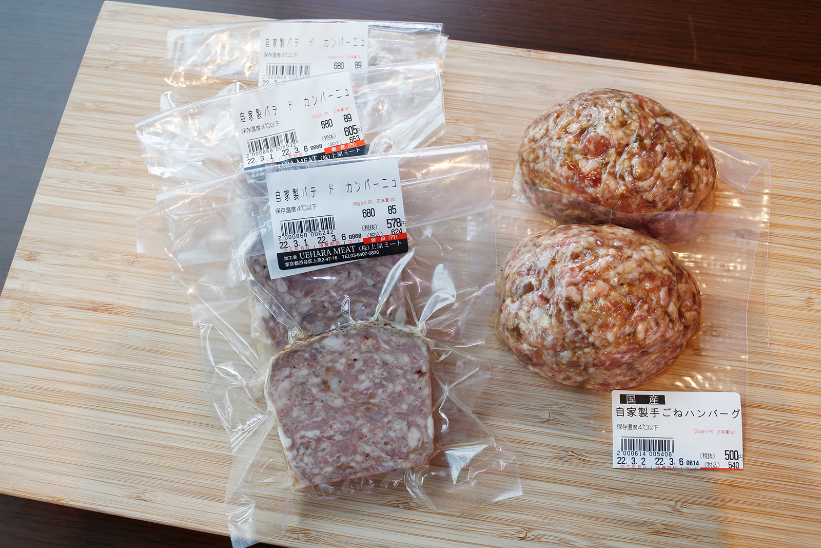上原ミートの人気商品は精肉だけではありません。簡単に調理したい、レストランの味を自宅で味わいたいというコロナ禍の巣篭もり需要に応えるために生み出された肉の加工品や惣菜も人気です。