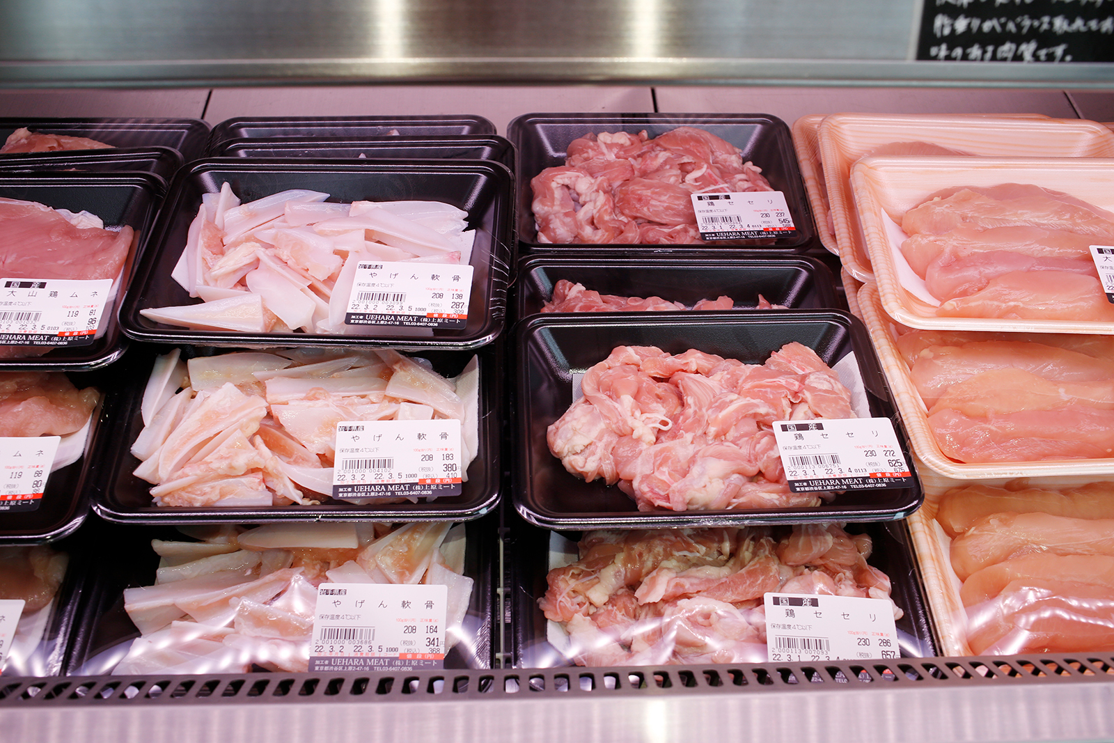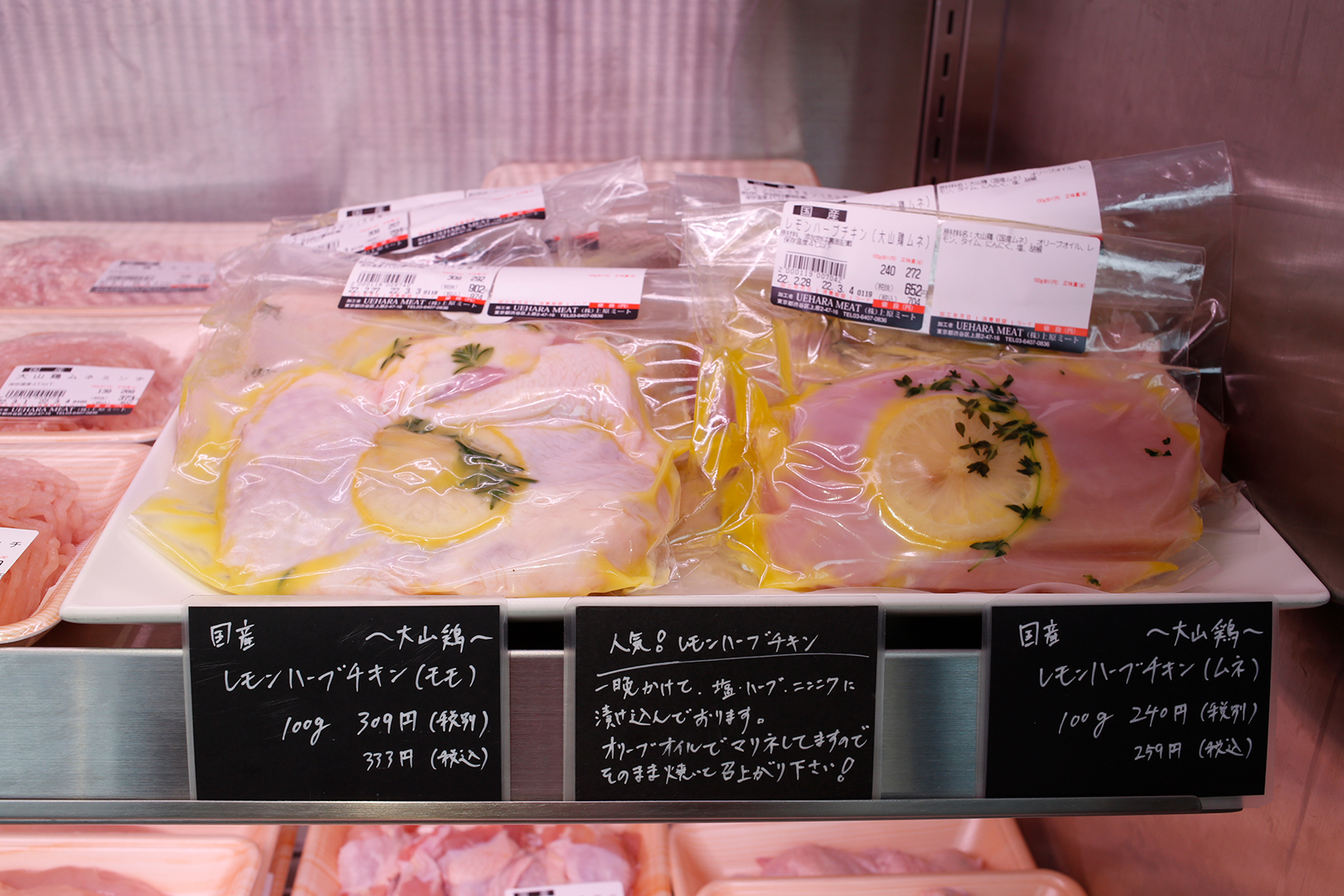鶏肉と加工品コーナー。比較的手頃なので試しやすい商品が揃う