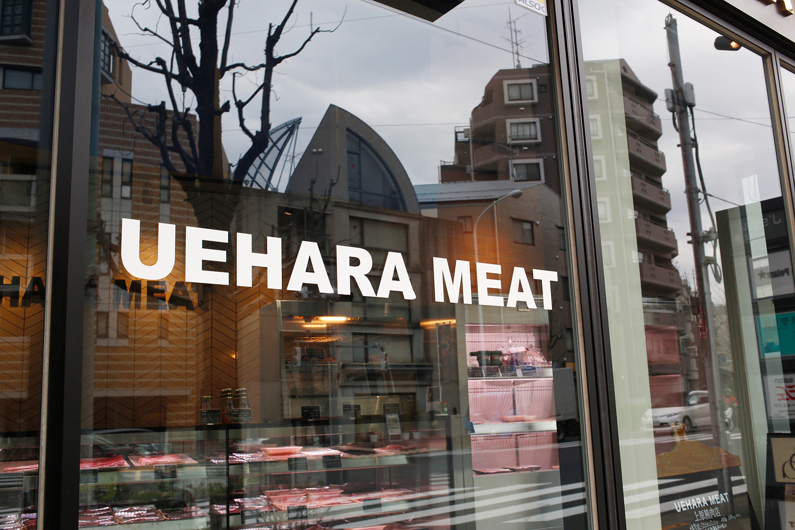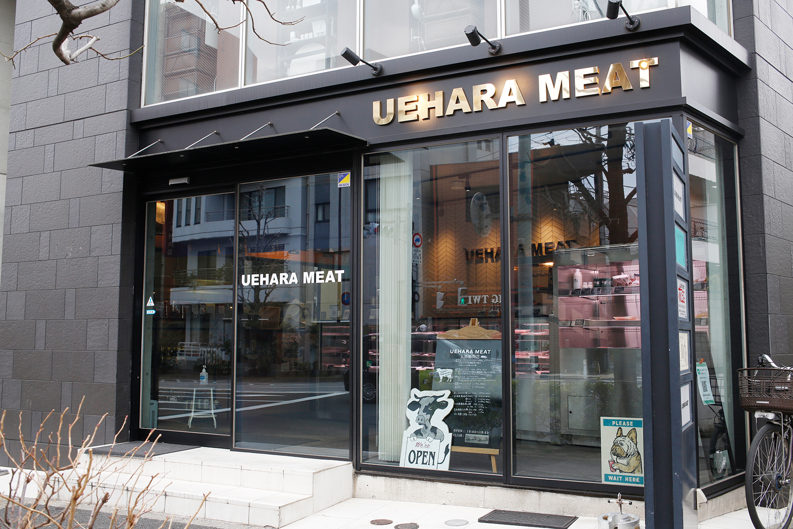 人気ケーキショップがひしめく上原一丁目で、今話題のお店が精肉店「上原ミート」。黒いスタイリッシュなビルの一階にあり、ライトに照らされて光り輝く店名「UEHARA MEAT」には風格さえ漂います。