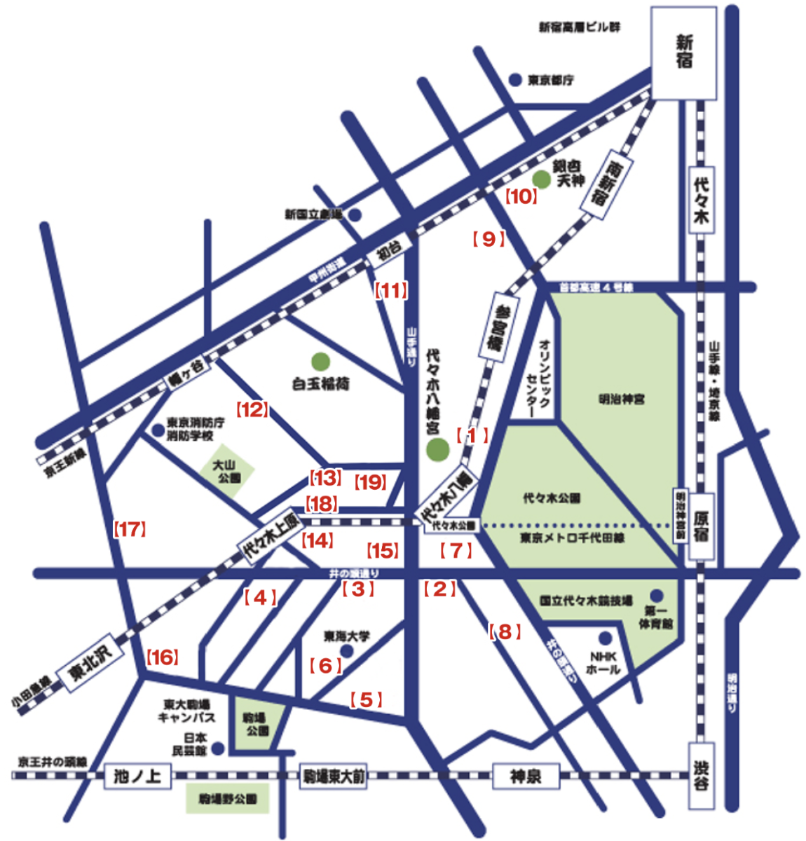 2025年 代々木八幡宮例大祭のおみこしマップは以下の通り。