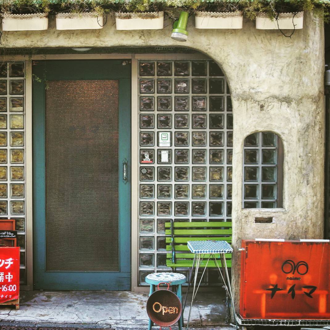 ガラス格子の壁に古いガラスのドア、いかにも一昔前に建てられた雰囲気を醸し出しているのが「喫茶バー ナイマ」。