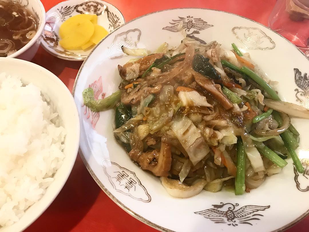 野菜炒めやレバニラ炒め、麻婆豆腐や餃子など、中華の王道とも言えるメニューにご飯、スープ、おしんこが付きます。