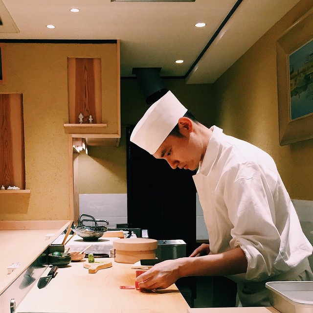 実は、アメリカはロサンゼルスでお寿司を握り、帰国後はマンダリンオリエンタルで腕を磨いた国際派シェフなんです!