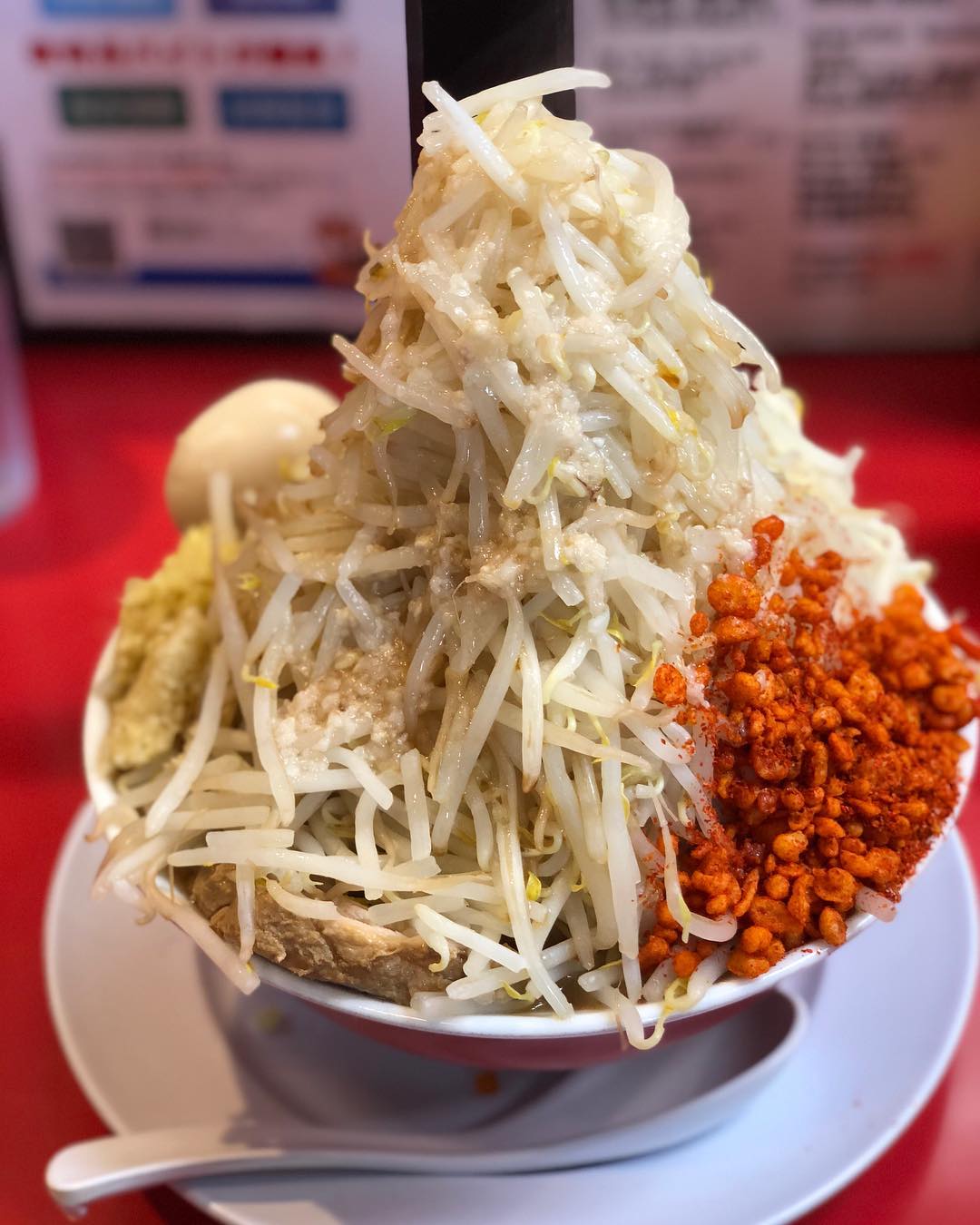 野菜、ニンニクに加えてアブラ、辛揚げ、ガリマヨとみたことのないトッピングがずらりと並びます。