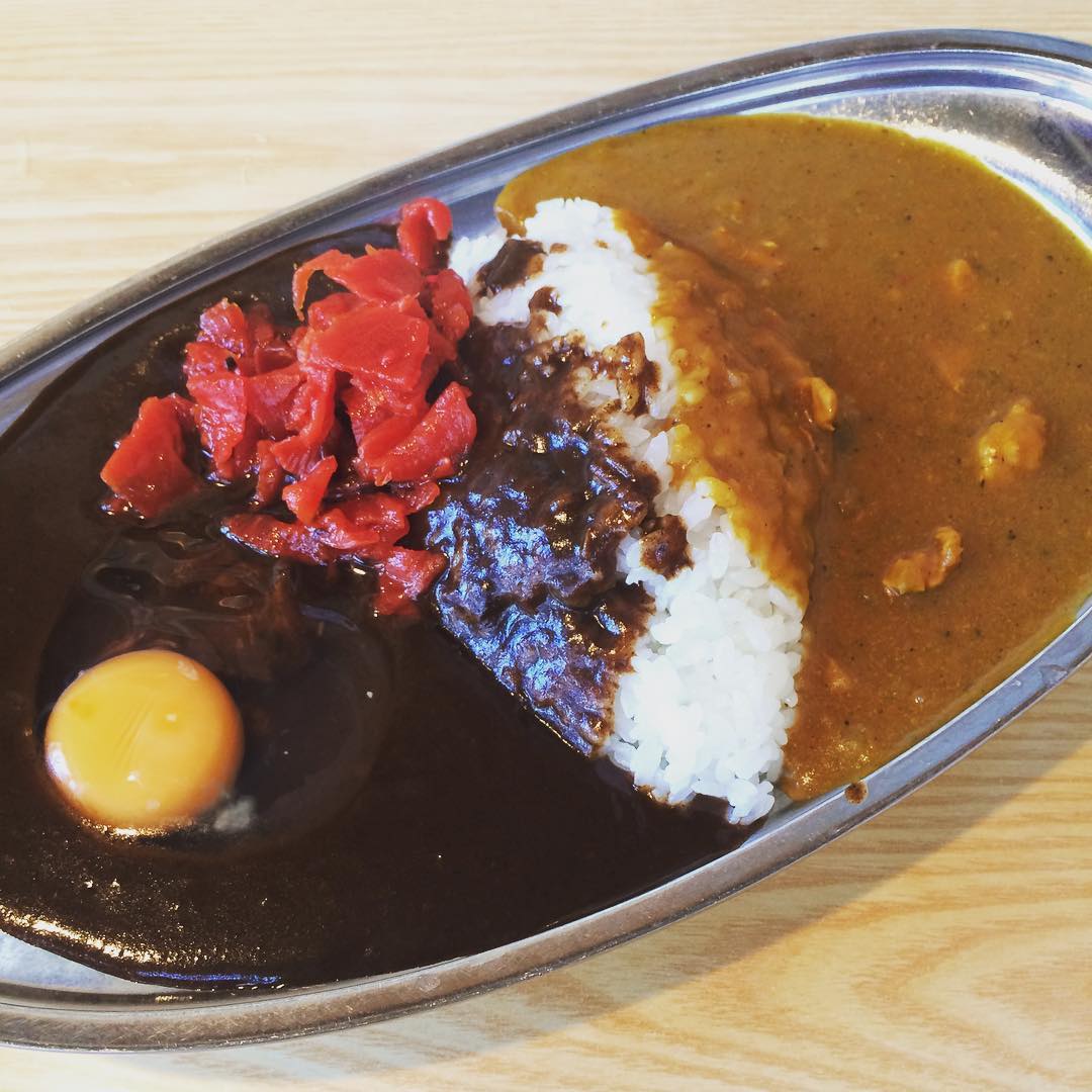 2種類のカレーを組み合わせてハーフ&ハーフでオーダーすることも可能です。お店のおすすめは最も辛いチキンカレー。
