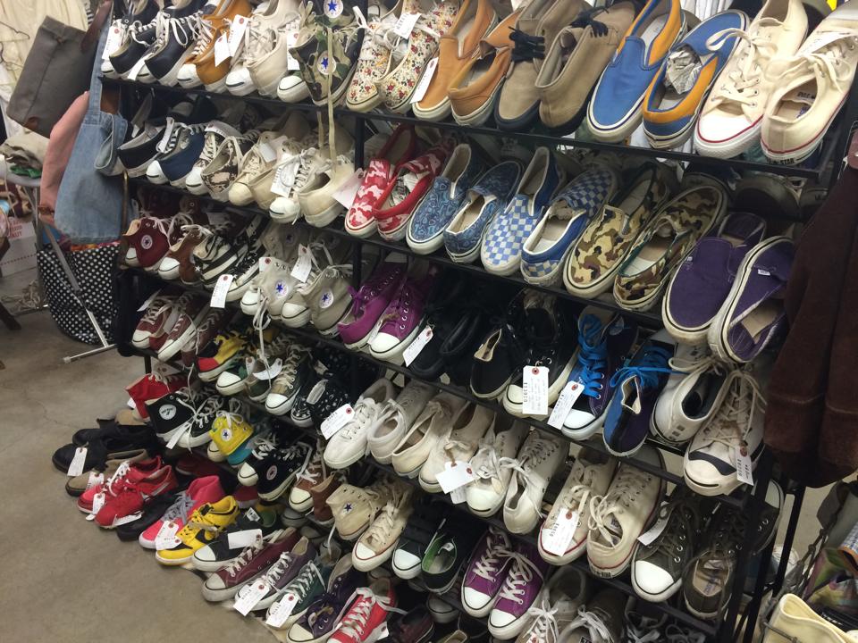 ラックの足元を見れば、スニーカーにブーツ、サンダルまで季節に合わせたアイテムがずらり。