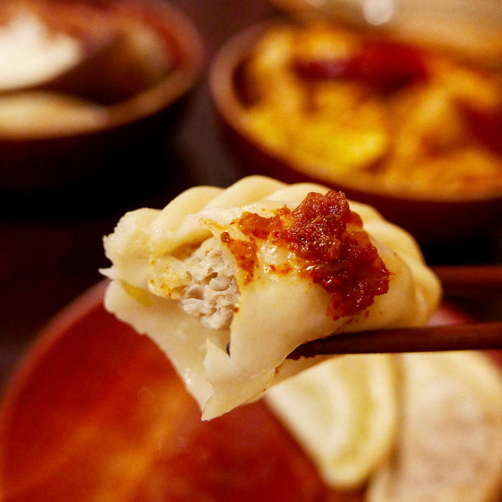 ブータンの蒸し餃子で、餡となる豚肉はとってもジューシーなのですが、付けダレがとってもスパイシー!