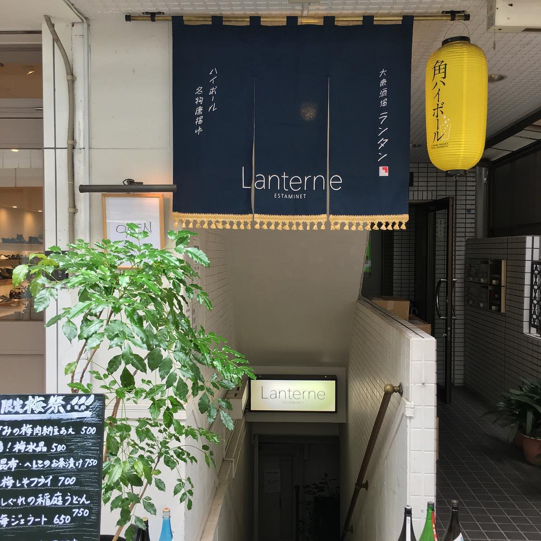 「Lanterne」と書かれたオシャレな暖簾が印象的な「ランタン」は、思わず立ち寄りたくなってしまいそうなカジュアル居酒屋。