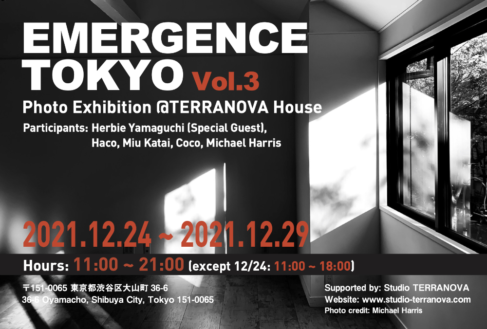 代々木上原にあるTERRANOVA Houseにて、東京を代表する5人の写真家によるコラボレーション企画展「Emergence Tokyo Vol.3」を開催いたします。